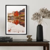 10,49 € – 98,99 €Plage de prix : 10,49 € à 98,99 €Une illustration flamboyante de l’automne avec cet arbre aux feuilles rouge et orange au bord de l’eau se reflétant à la surface calme du plan d’eau. À l’arrière-plan, des maisons et une végétation variée ajoutent une touche de charme rural à la scène. Une atmosphère douce, légèrement brumeuse, évoque la tranquillité d’une journée indiquant que l’hiver approche…